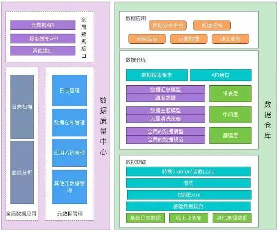 數據倉庫的基本架構主要包含的是數據流入流出的過程,可以分為三層——數據獲取、數據倉庫、數據應用: